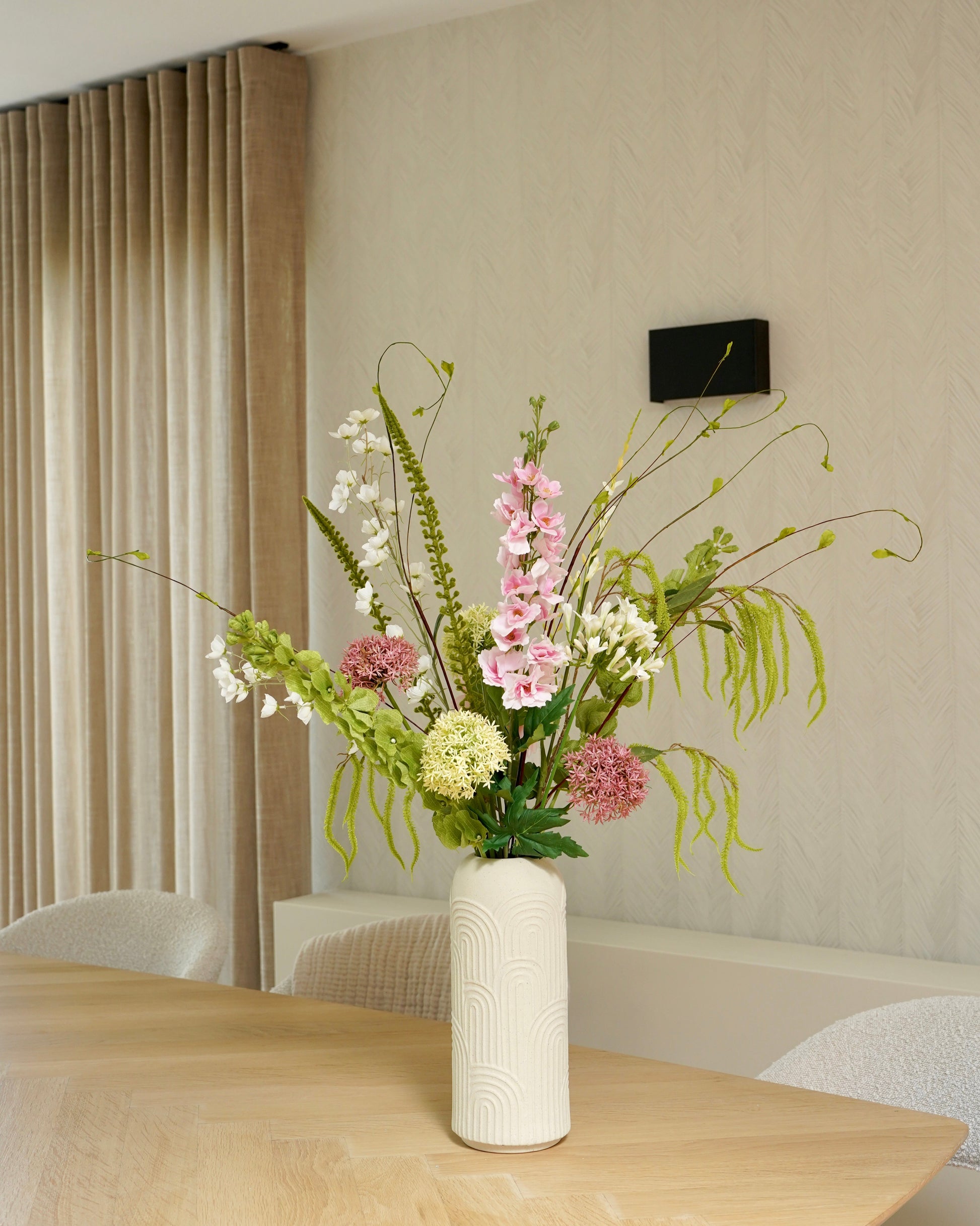 “Dit boeket overtrof mijn verwachtingen. De bloemen zien er zó echt uit dat mijn vriendinnen dachten dat ze vers waren. Zelfs de subtiele bloemengeur maakt het compleet. Snelle levering en prachtig verpakt, echt een luxe toevoeging aan mijn woonkamer.”